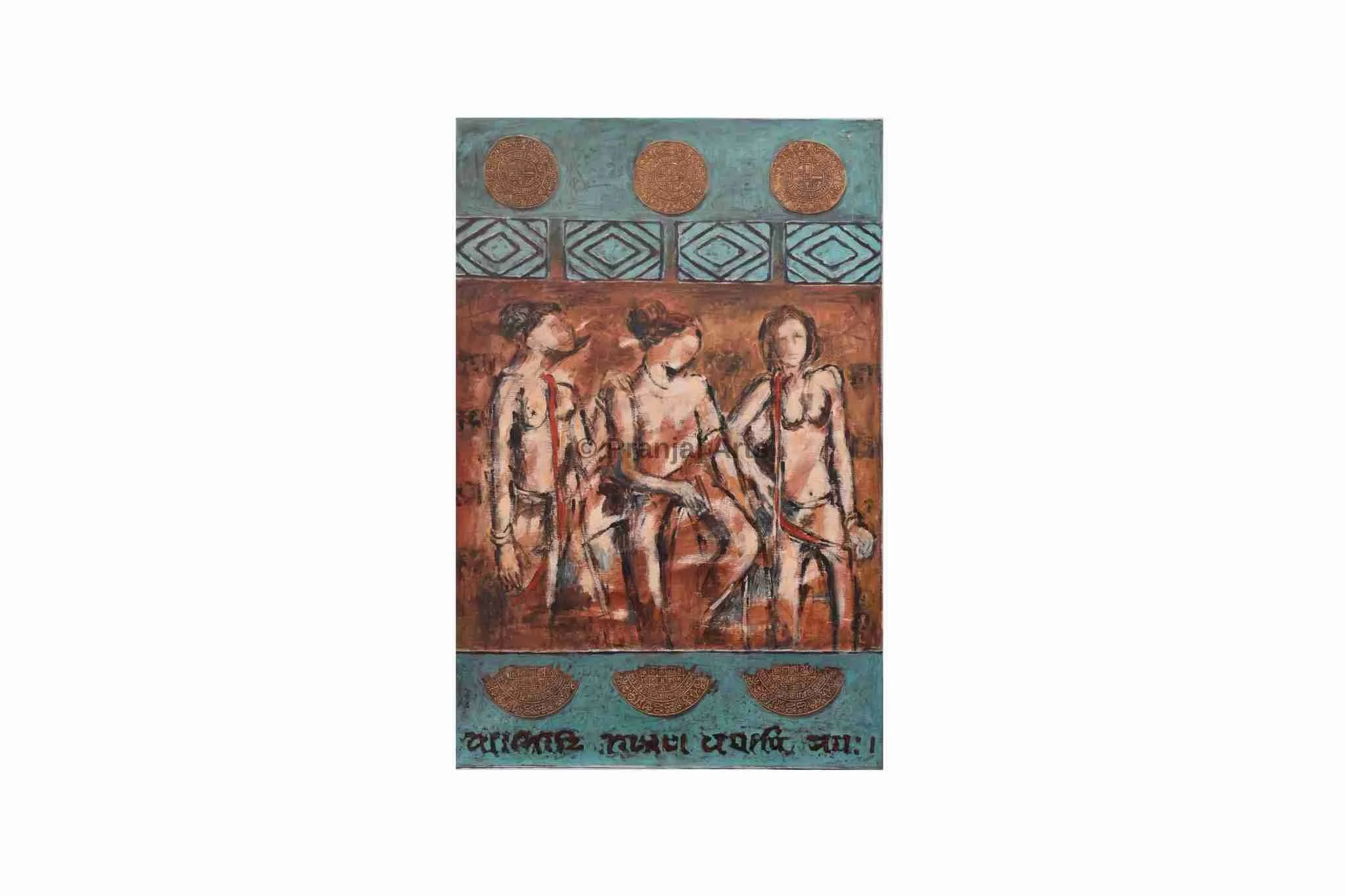 About the Artist: Jiten Hazarika was born in Assam, and studied civil engineering, and served in the army before becoming an artist. His knowledge of philosophy and Sanskrit Literature are apparent in his work which has eye-catching rhythms, vibrant color harmonies and arresting spatial configurations.